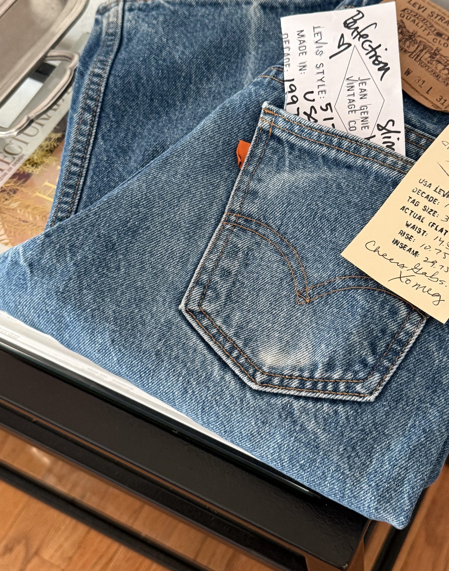 I’ve always wanted to get another pair of vintage Levi’s 517s because I love the way they look on my legs/shape. I finally got to score the perfect pair from Meg at Jean Genie, who I’ve been following for years! Her collection is seriously out of my dreams..